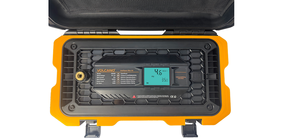 K800B is a high-flow portable compressor with dual-motor. 1.180L/Min.(6.36CFM) powerful airflow fills items quickly. 2. Smart digital gauge stops automatically at the right pressure, accurate within 1PSI. Simple button lets you select different pressure settings. 3. The dual-motor and dual-cylinder design for faster, steadier inflation ; the oil-free design is maintenance-free. 4. Special cooling system prevents overheating. 5. Safety feature automatically resets if the device gets too hot. 6. Runs quietly with minimal vibration. 7. Protector case is made of sturdy and durable material and has an IP65 waterproof design, providing all-round excellent protection.